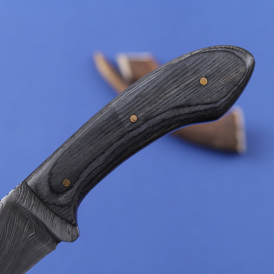 Cuchillo de caza de hoja fija de acero de Damasco con mango de Pakkawood de grado industrial, cuchillos de caza personalizados OEM