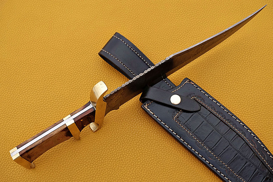 Bowies de caza de hoja fija de acero damasco con mango de madera para supervivencia Camping al aire libre OEM