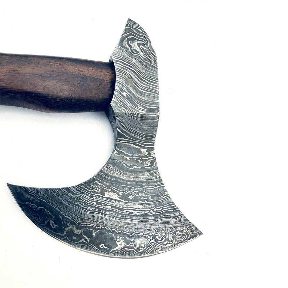 Hacha Vikinga de Doble Hoja de Acero de Damasco, Grado Industrial, Resistente, Filo Afilado, Mango de Madera, Personalizable, para Uso en Exteriores