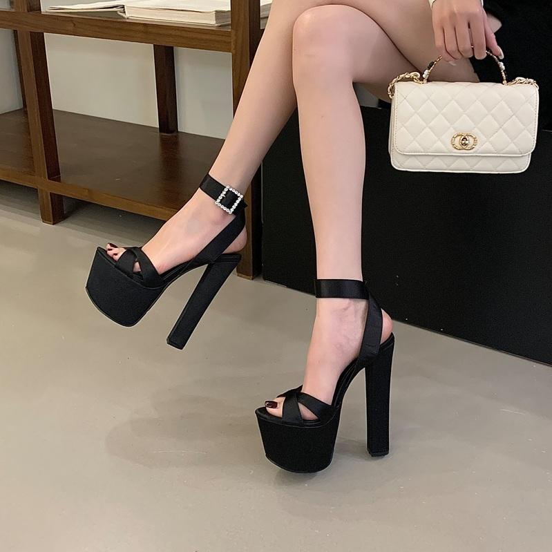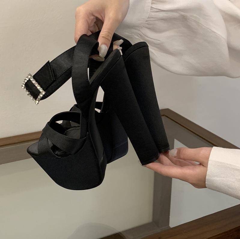 Zapatos de tacón grueso de 16 cm con plataforma de 6 cm y hebilla de cinturón de baile, punta redonda, para fiesta, ¡gran oferta!