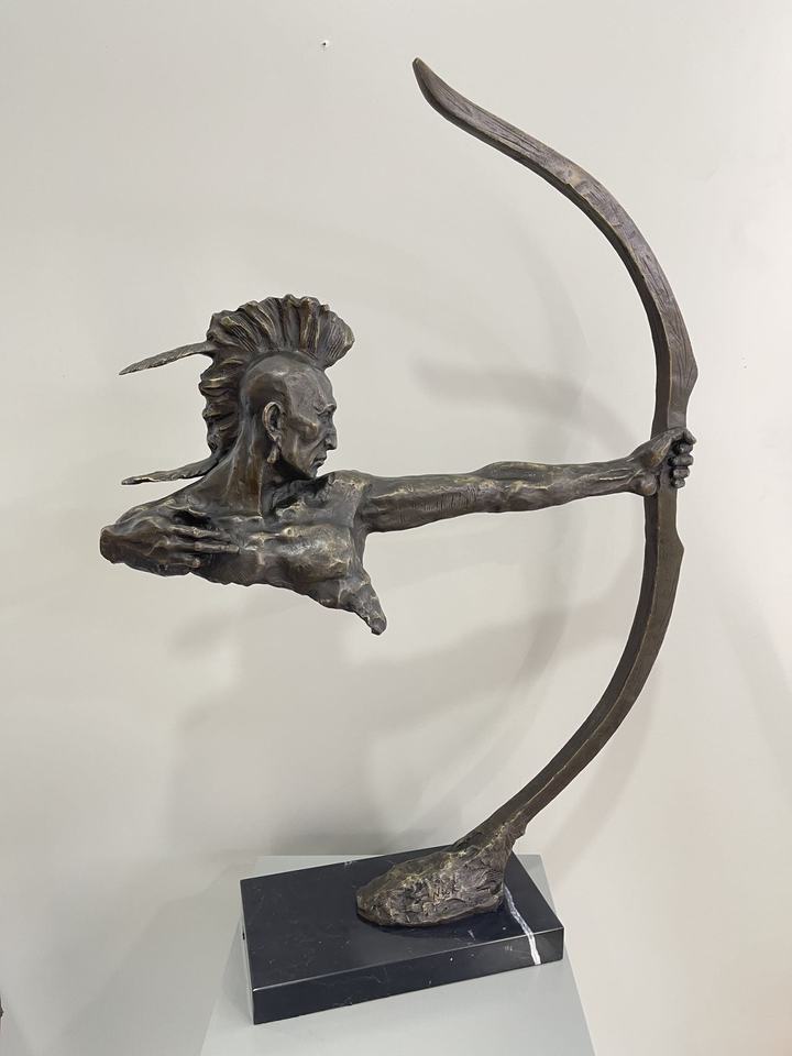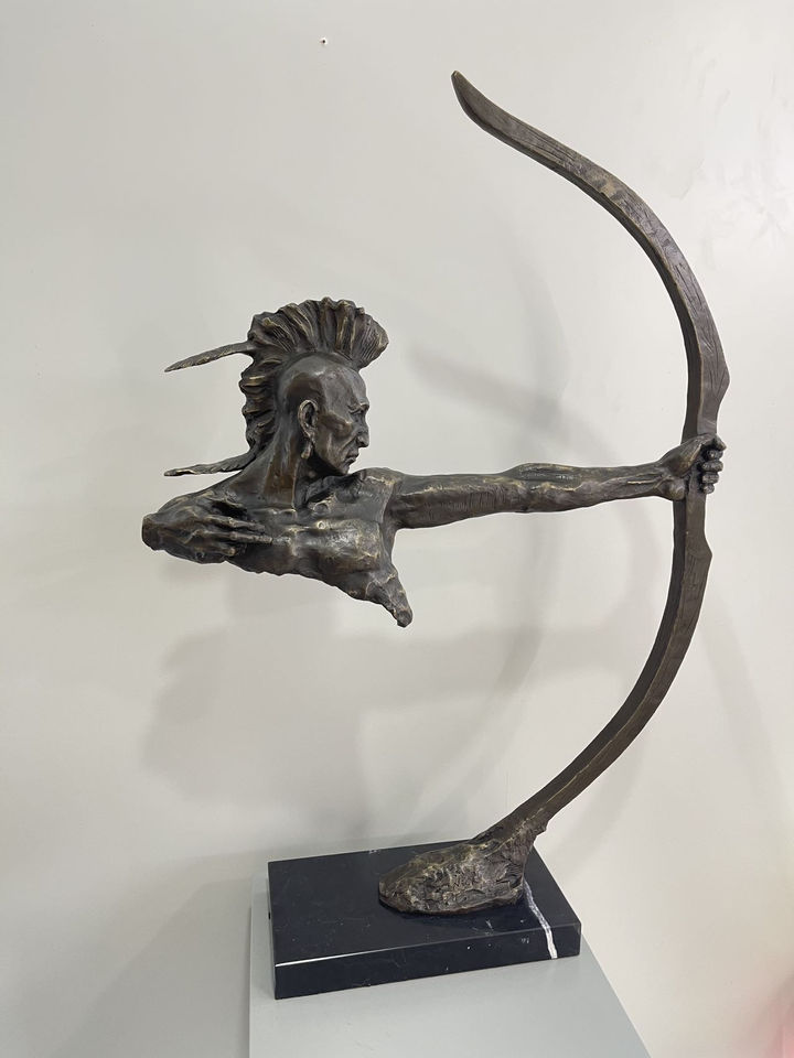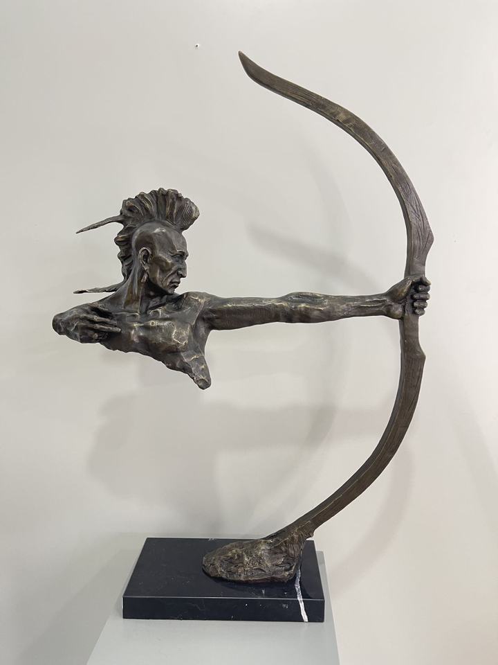 Danzas lobos ilustraciones abstractas bronce Mohawk jefe Escultura Moderna Sioux indios tiro con arco Metal fundido Color personalizado decoración del hogar