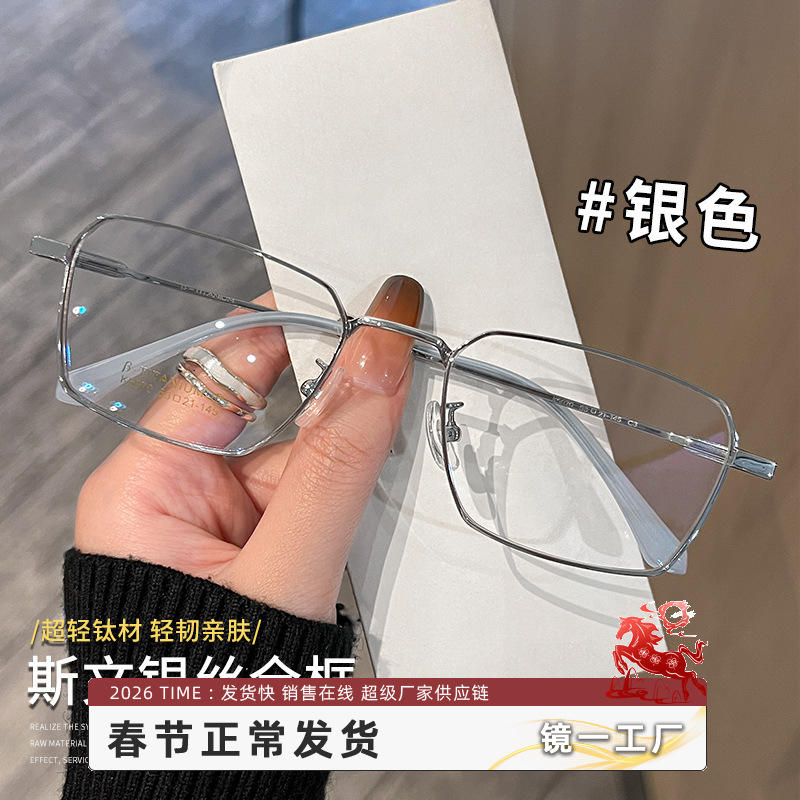Gafas de Titanio Puro con Montura Plateada, Modelo Rectangular 5070, Ligeras, Unisex, Montura Completa, Lentes de Plástico, Marca Danyang