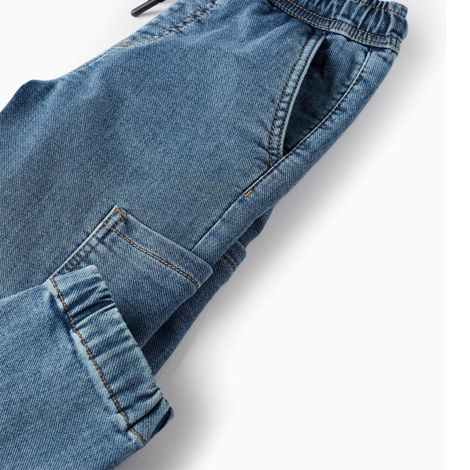 Estilo:55493 Pantalón Cargo de Mezclilla con Puño 2B