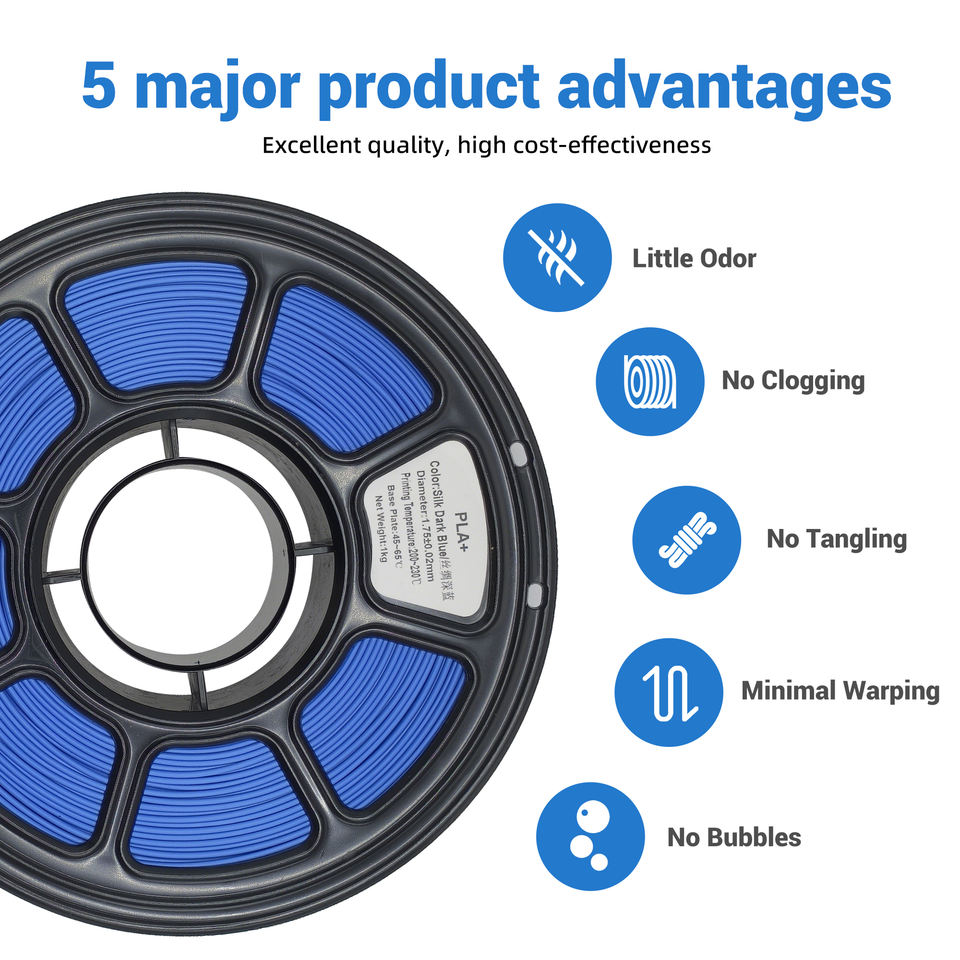 Filamento para Impresora 3D PLA Plus Azul Oscuro, Precisión Dimensional +/- 0.03 mm, Bobina de 1 kg, 1.75 mm