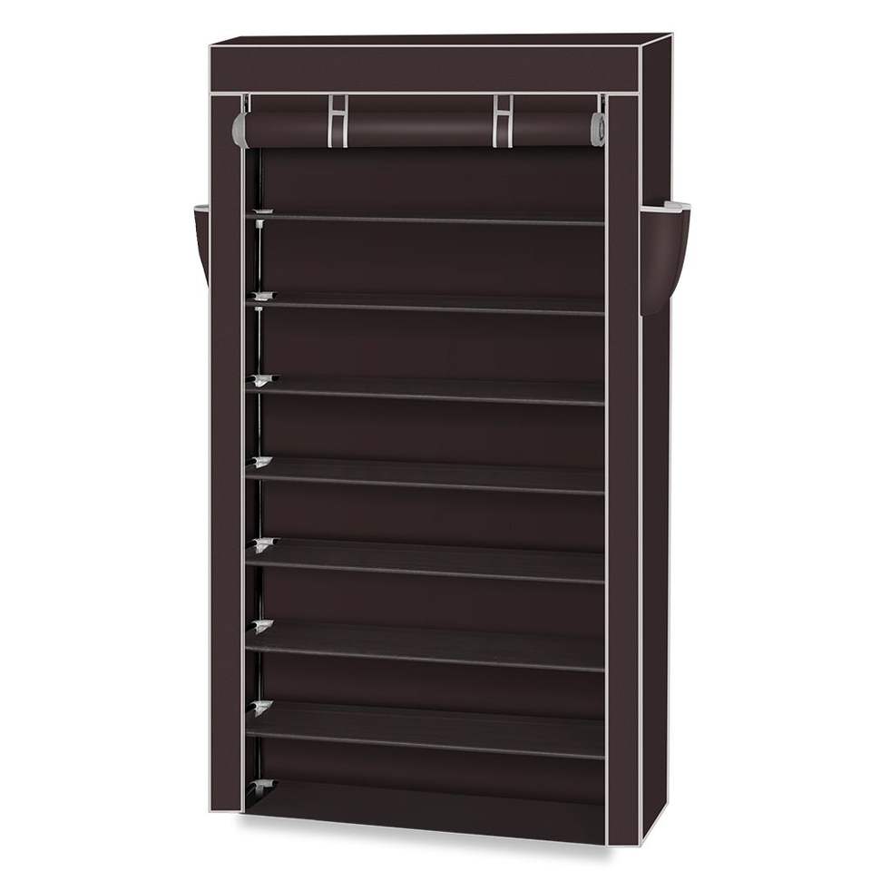 Zapatero de 10 Niveles Color Marrón Oscuro con Cubierta Antipolvo, Organizador de Zapatos para Armario, Categoría de Producto: Zapateros