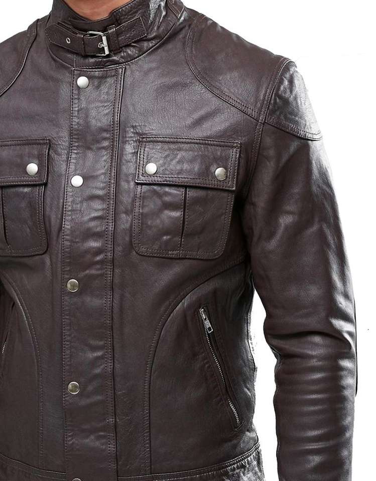 Nombre:Chaqueta de cuero marrón para hombre de la motocicleta