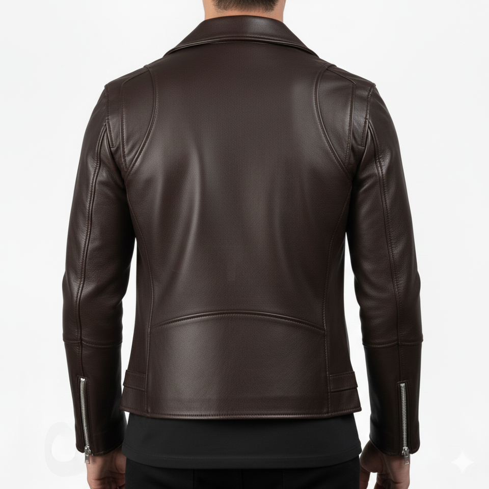 Chaqueta de Cuero Vacuno para Hombre, Diseño Personalizado, Color Marrón Oscuro, Estilo Casual, Cierre de Cremallera, Cuello Alto, Ropa de Calle de Invierno, Logotipo Frontal