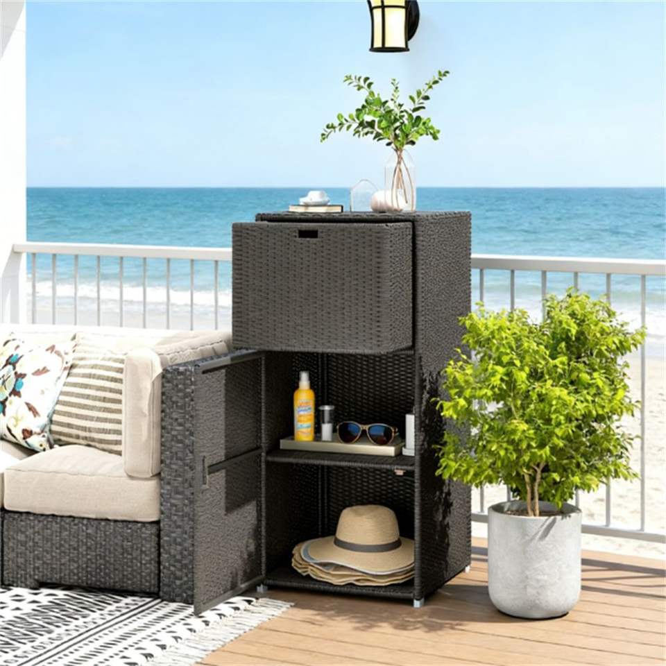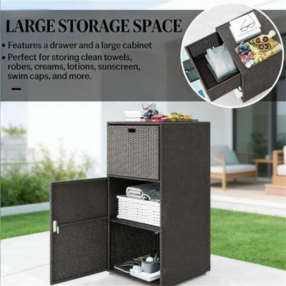 Estante para Toallas de Piscina y Armario de Almacenamiento Color Marrón Oscuro para Guardar Accesorios de Piscina