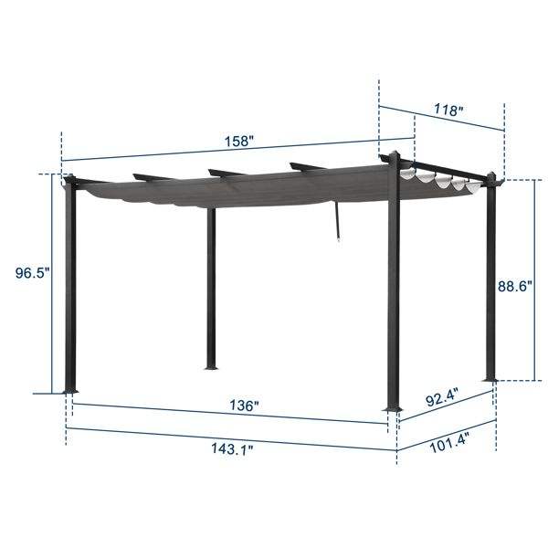 Toldo Ajustable de Poliéster Gris Oscuro para Gazebo de Hierro Forjado de 5 Vigas, 395*300*245cm, Categoría de Producto: Pérgola
