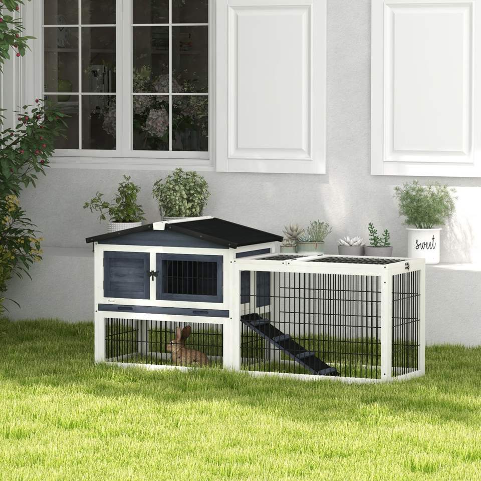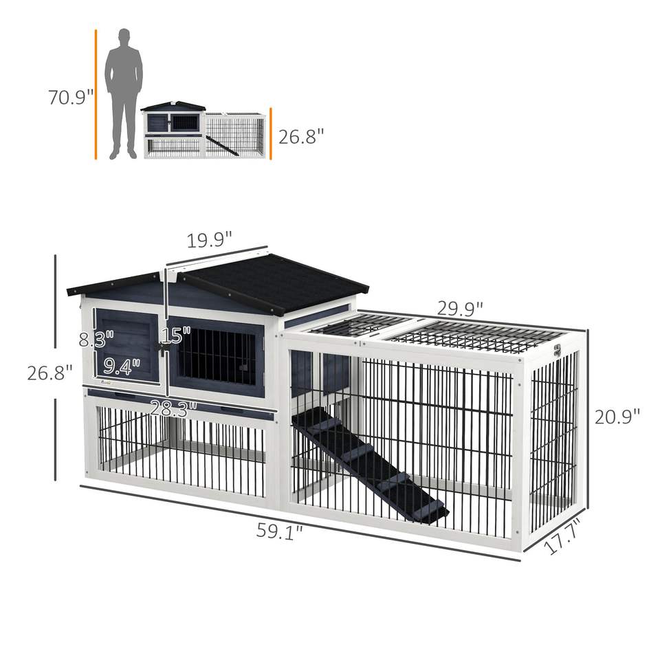 Jaula para conejos de exterior gris oscuro de 2 niveles y 59 pulgadas con techo abatible