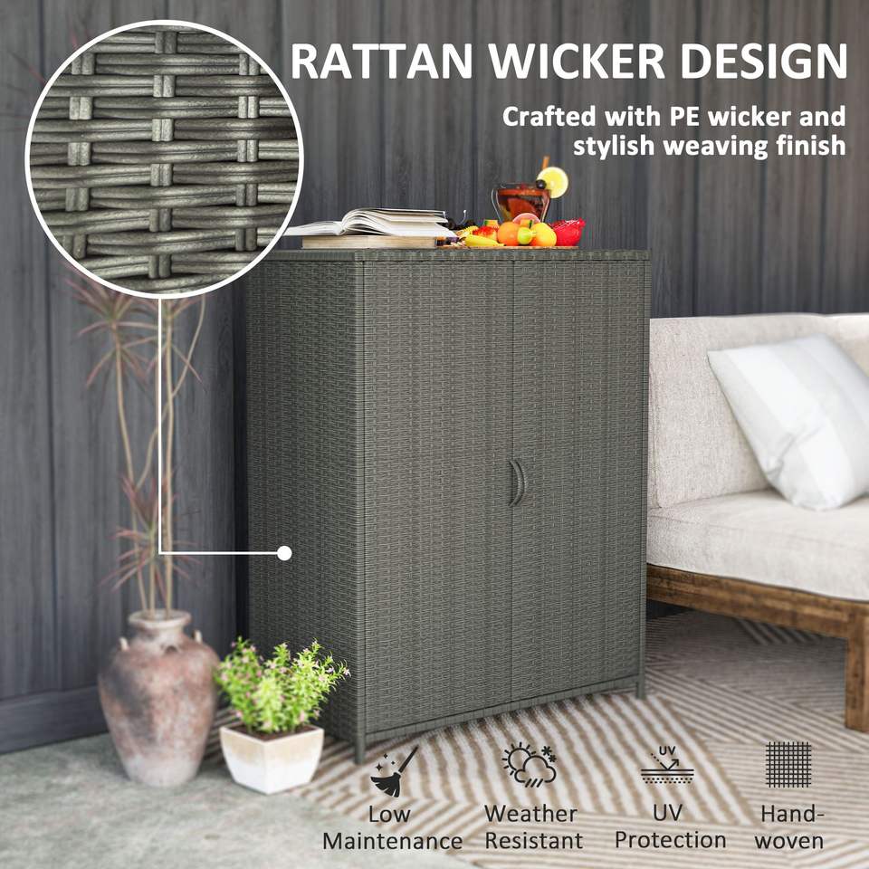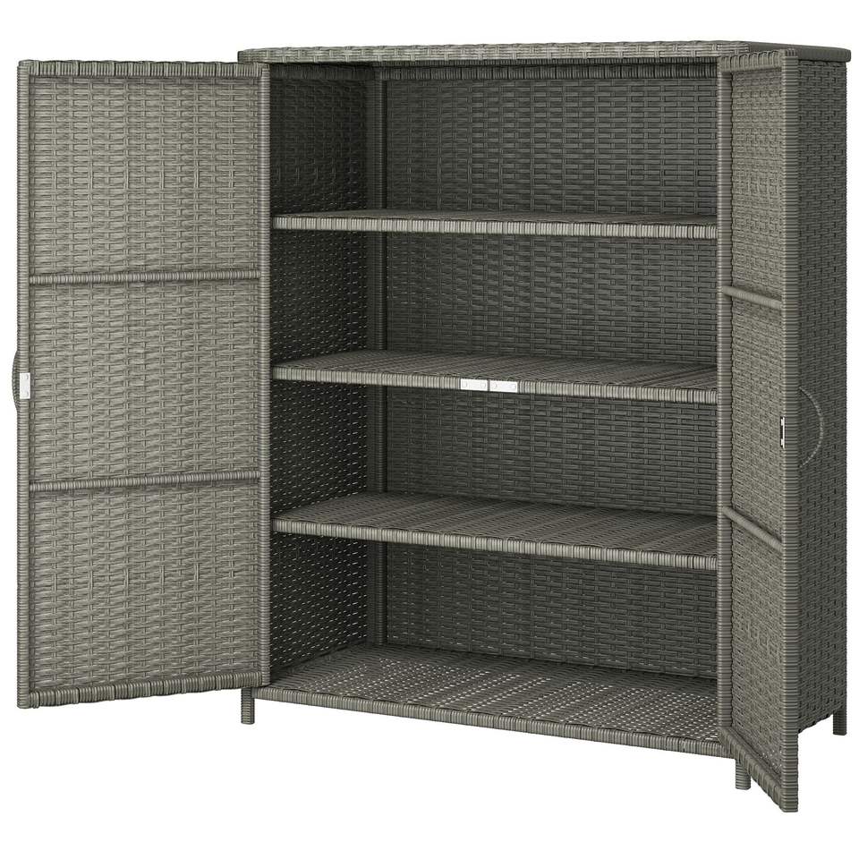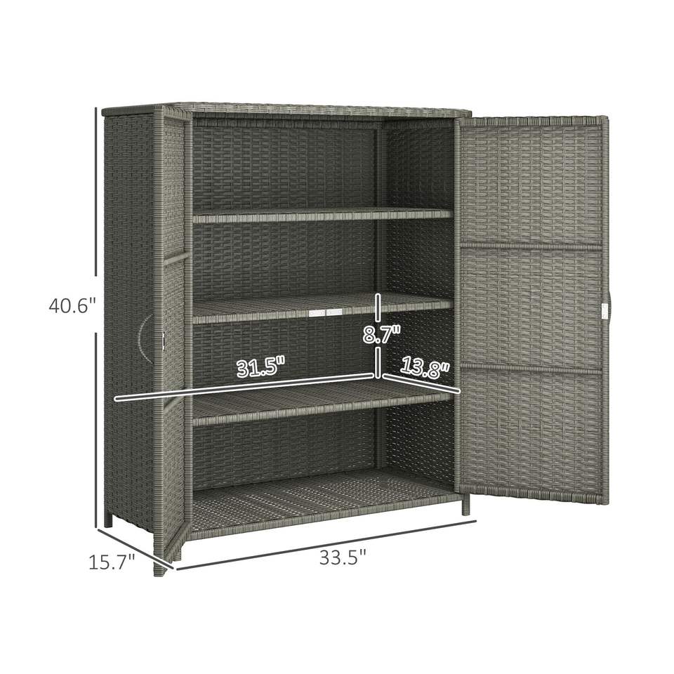 Armario de Almacenamiento Exterior de Mimbre Gris Oscuro con 4 Estantes y 2 Puertas para Guardar Toallas en el Jardín o la Piscina