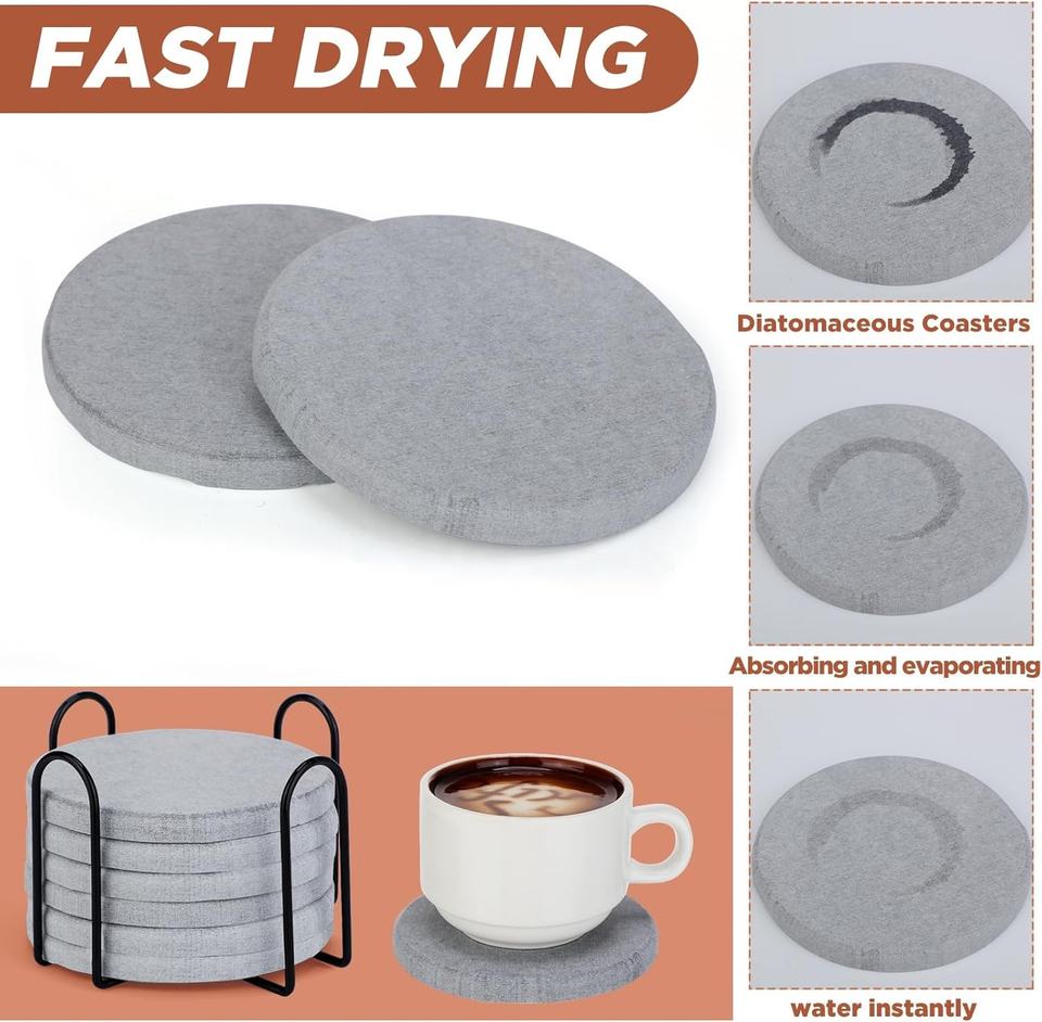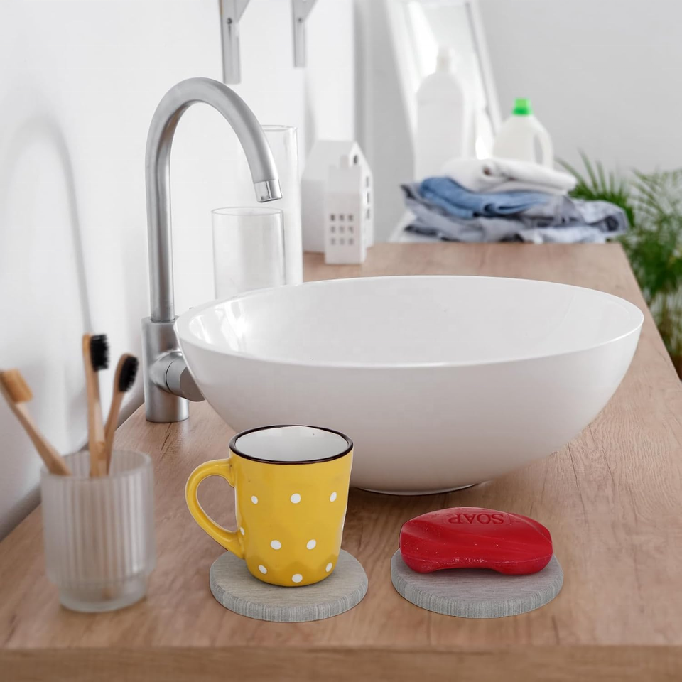 Posavasos de piedra gris oscuro de 3,93 pulgadas con tierra de diatomeas absorbente, posavasos redondos de secado instantáneo para bebidas, decoración moderna para el hogar