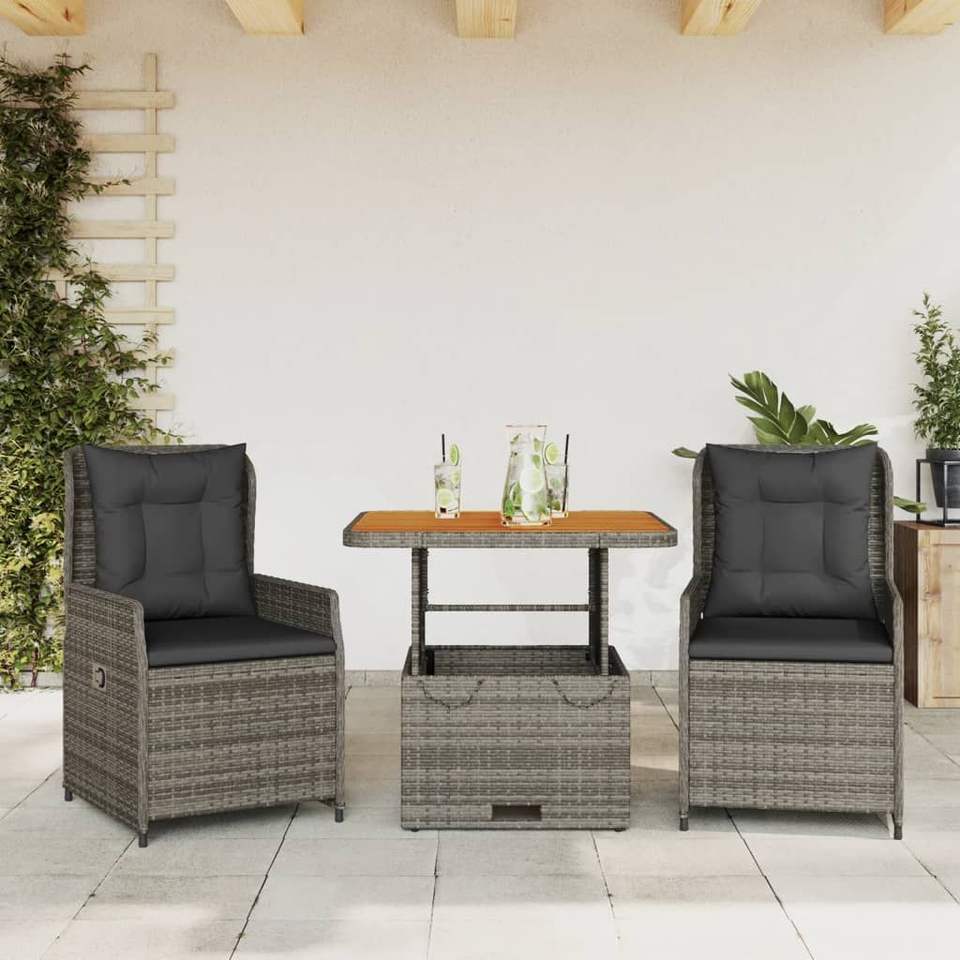 Conjunto de Bistro de Ratán Gris Oscuro para 2 Personas, Muebles de Jardín para Exteriores, Diseño Contemporáneo
