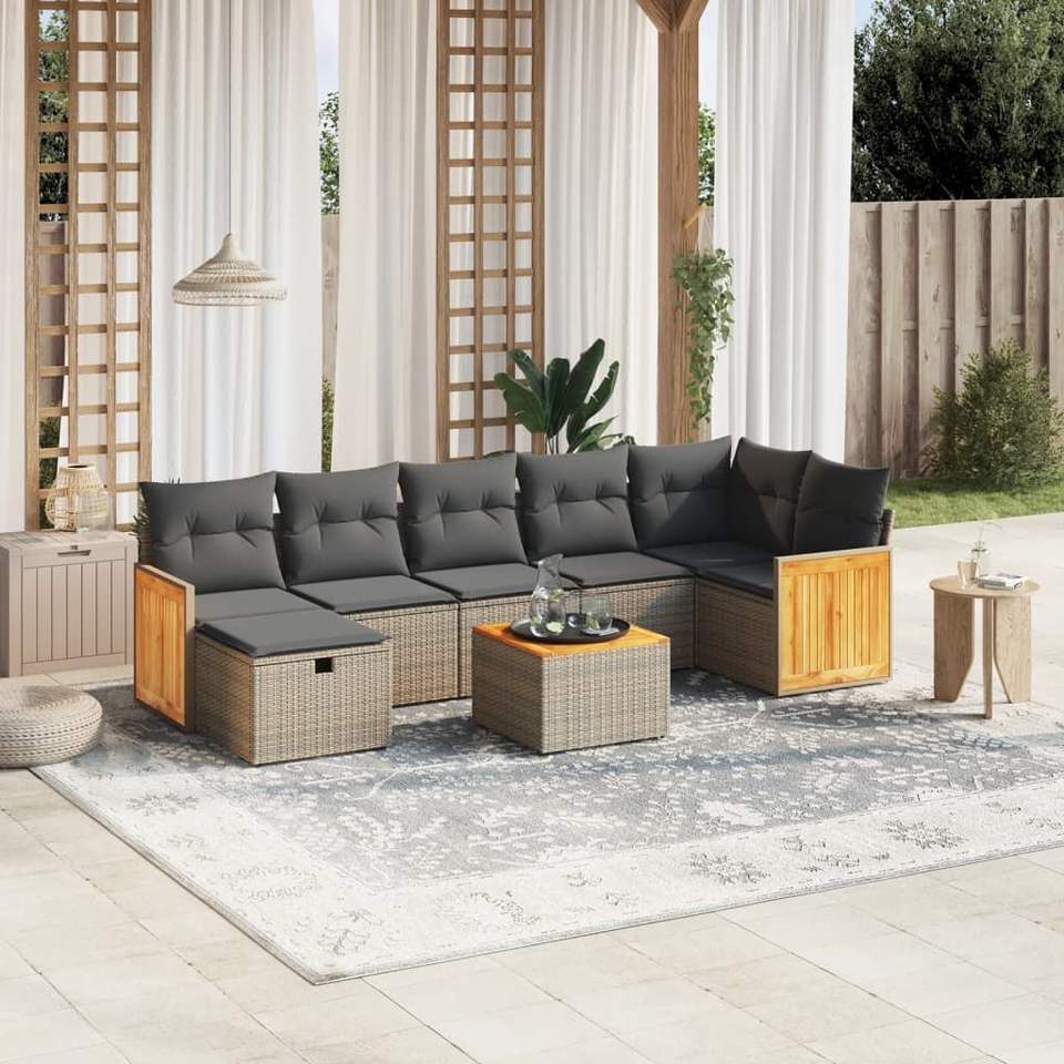 Conjunto de Sofá de Jardín de Ratán Gris Oscuro con Asientos Acolchados, Muebles de Exterior de Diseño Contemporáneo, Ratán PE Resistente a los Rayos UV