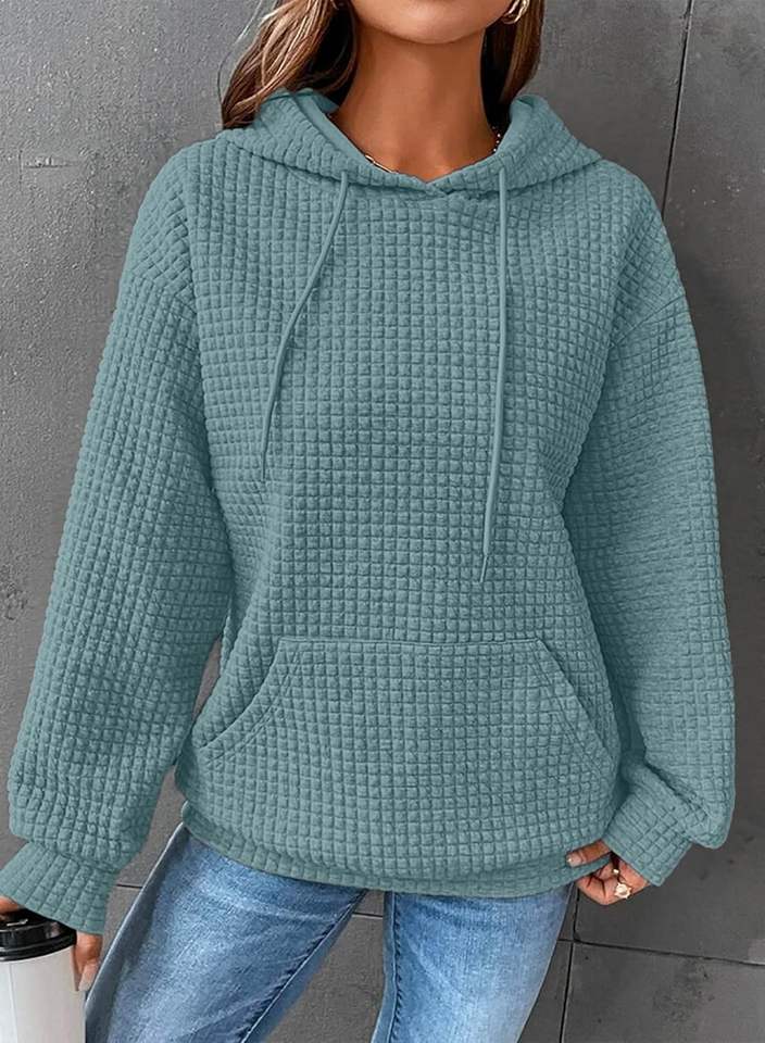 Sudadera con Capucha Gris Oscuro para Mujer, Informal, de Manga Larga, con Cordón, Estilo Waffle, Holgada, con Bolsillo, 100% Algodón GK