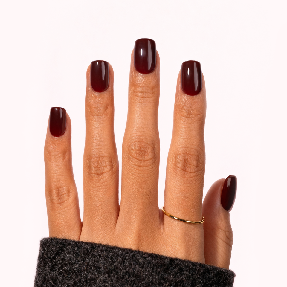 Uñas Acrílicas Cortas de Color Rojo Oscuro, Forma Cuadrada, Color Sólido, Textura Dura, Uñas Adhesivas, Uñas Artificiales al por Mayor