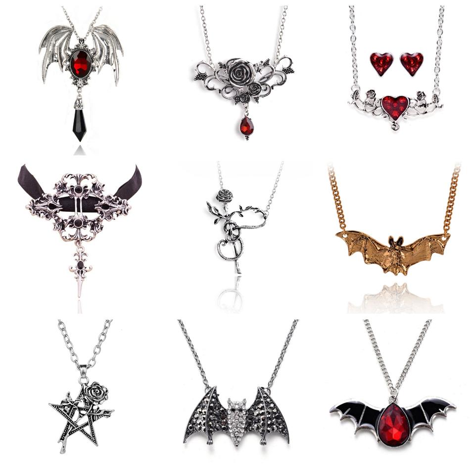 Gargantilla Gótica Rosa Oscura y Conjunto de Calavera, Collar de Murciélago de Halloween y Joyería de Moda Pirata Vampiro