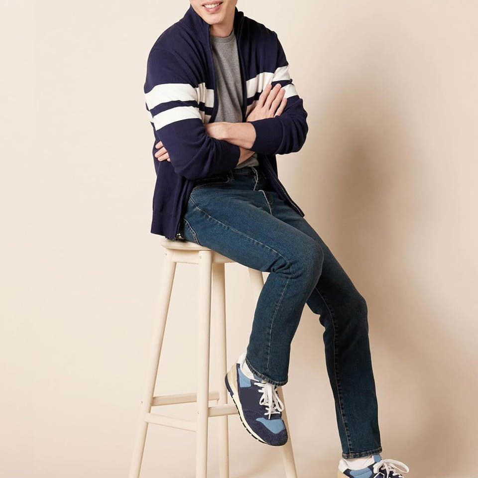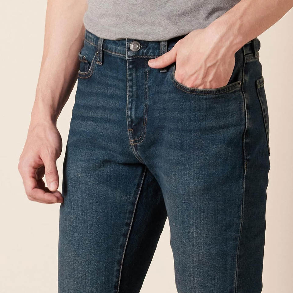 Dark Wash Custom Fit Denim Jeans para hombres, ideal para trajes diarios informales o semiformales