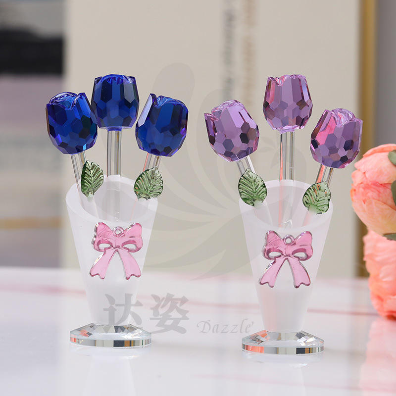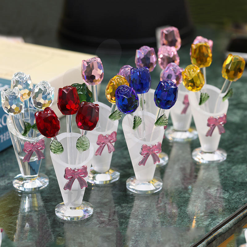 Jarrón de Cristal Dartz con Tres Rosas Pequeñas, Recuerdo de Boda para Mesa, Artículo Decorativo Artístico