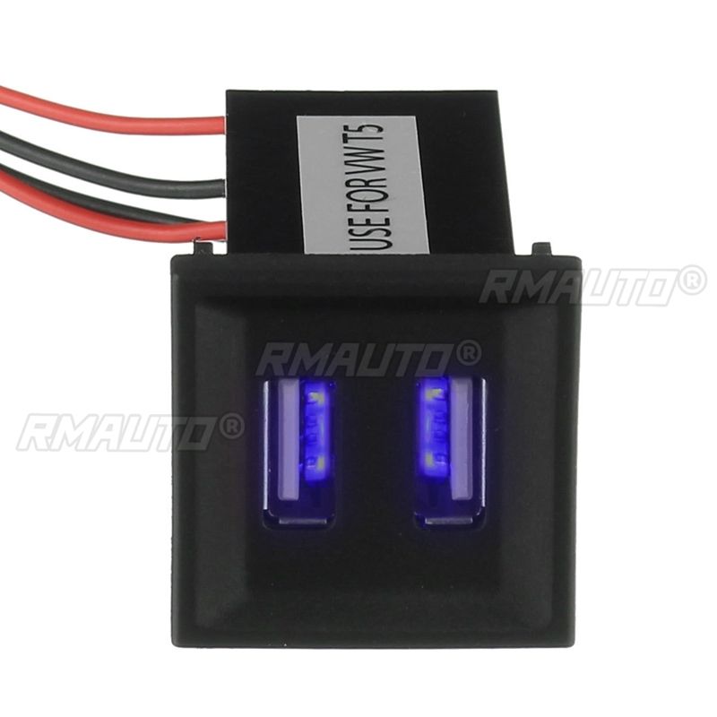 Interruptor de Tablero con Doble Puerto USB, Cargador de Teléfono, Adaptador, Inversor de Corriente para Volkswagen VW T5 Transporter 2003-2009