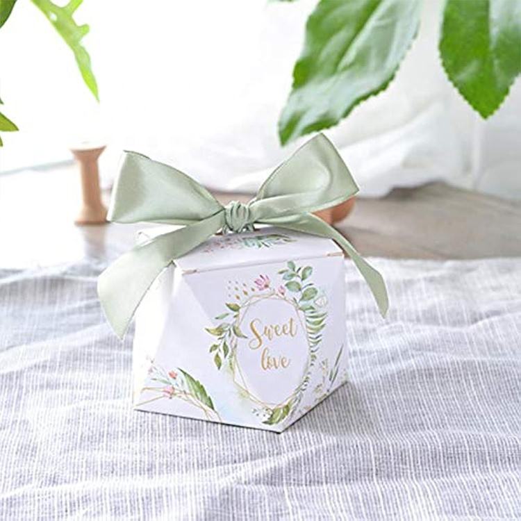 Embalaje de fecha mini boda chocolate papel favor cajas de dulces en forma iridiscente con mensajes
