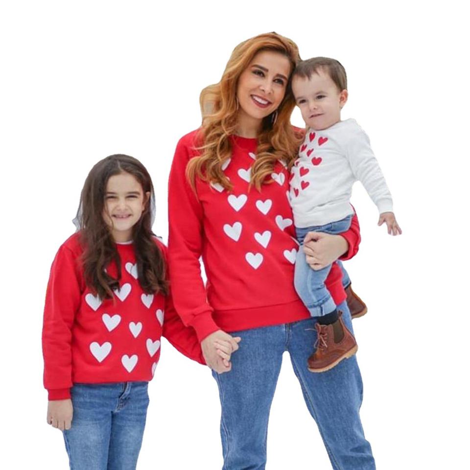 Conjuntos de Otoño a Juego para Mamá e Hija, Ropa de Madre e Hija, Suéter Estampado con Amor, Camiseta de San Valentín para Mamá e Hija