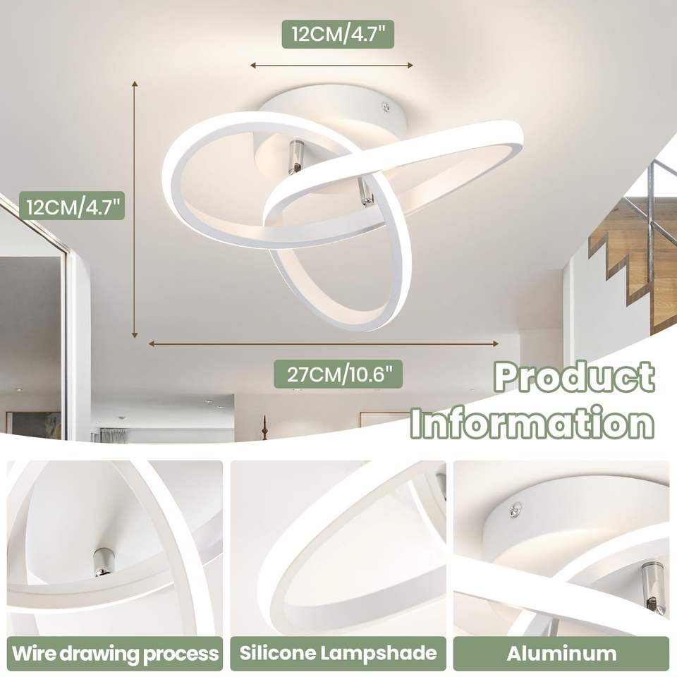 Lámpara de Techo LED Curva Moderna de Luz Blanca Diurna para Pasillo, Escalera, Cocina, Baño, Dormitorio, Balcón, Lavadero, Hogar