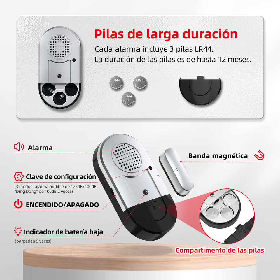 Alarma Inalámbrica Portátil Daytech con Sensor de Puerta y Alerta de Batería Baja, Fácil Instalación para Alerta de Visitantes en Tiendas