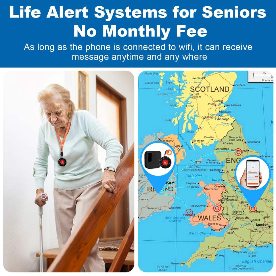 Sistema de Alerta Inalámbrico WiFi Daytech con Botón de Llamada ABS para Cuidadores, Sistema de Respuesta de Emergencia SOS para Personas Mayores en el Hogar