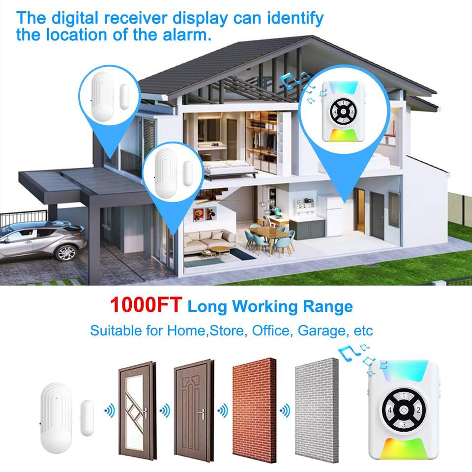 Sensor de alarma de puerta inalámbrico Daytech, sistema de alarma de intrusión de ventana y puerta, timbre de alerta estroboscópica emisor de luz