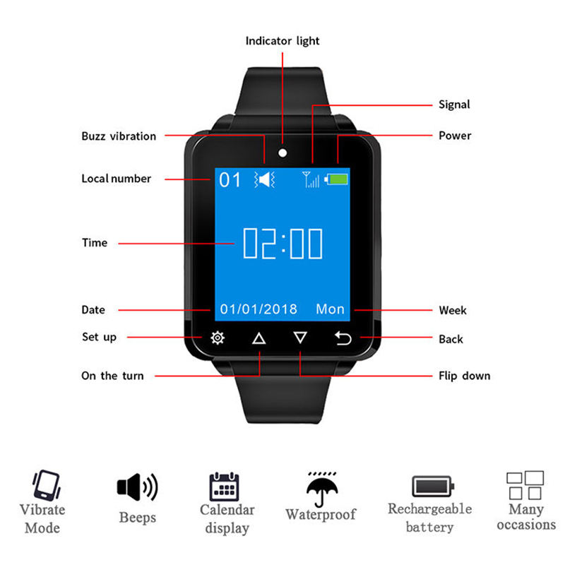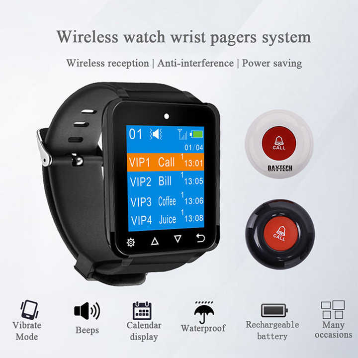 Sistema de Llamada Inalámbrico a Prueba de Agua Daytech para Reloj de Muñeca, Localizador para Cuidadores, Ancianos, Hospitales, Residencias y Restaurantes