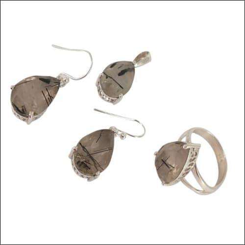 Deslumbrante conjunto de joyas de piedras preciosas de plata 925 Colección de piedras preciosas de energía rutilo negro