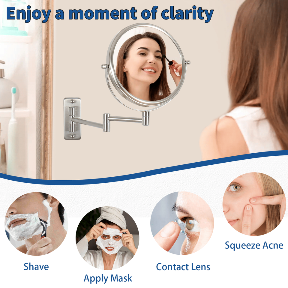 Espejo de Maquillaje de Pared Db de 8 Pulgadas con Aumento de 1X y 10X, Giratorio 360 Grados con Brazo Extensible