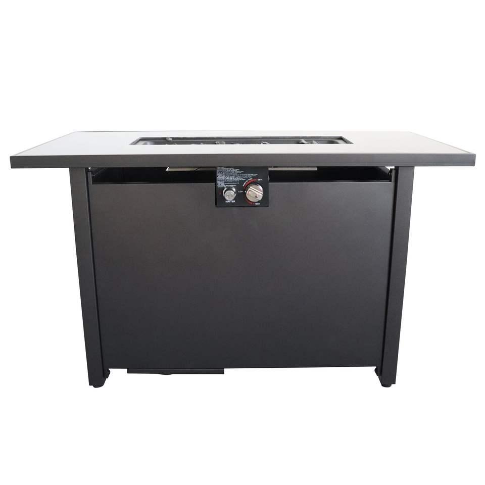 Mesa de Fogatas para Exteriores Db, 25 H x 42 W, Rectangular de Acero Negro, Decoración de Jardín a Gas Propano