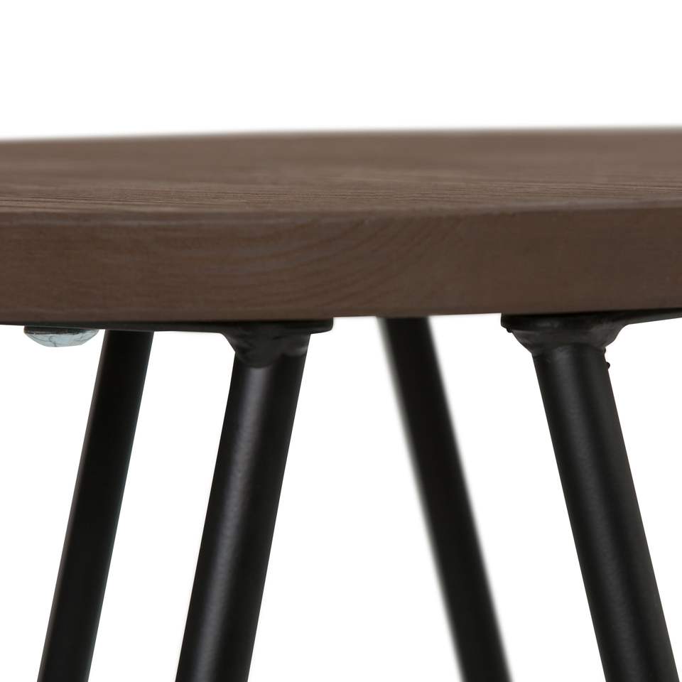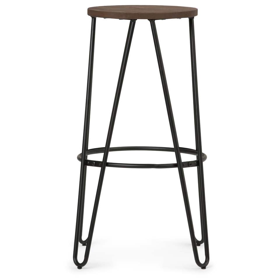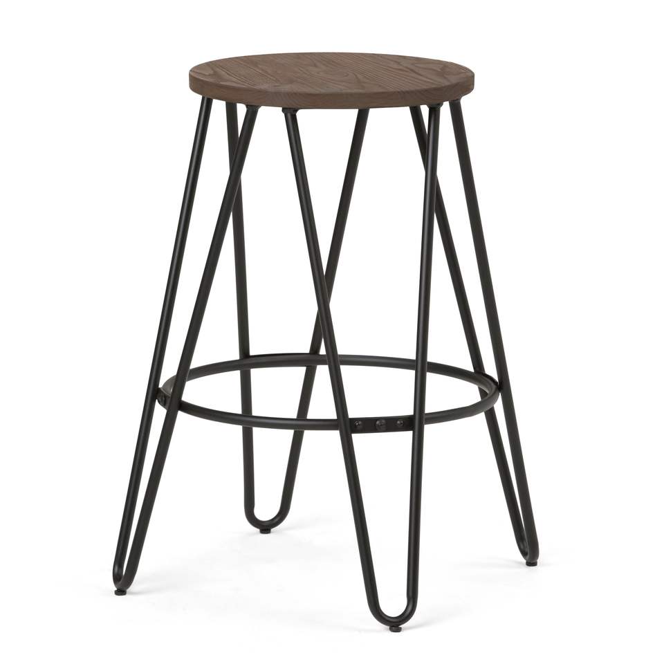 Taburete de bar contemporáneo Db Simeon de 24 pulgadas con asiento de madera color marrón cacao y estructura de hierro negro para uso en bares domésticos.