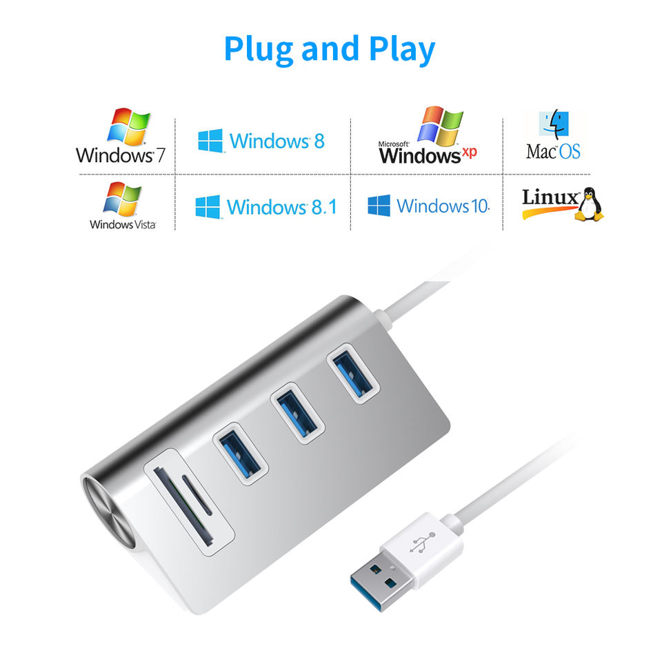 Interfaz:3 Puerto USB 3,0 hub lector de tarjetas