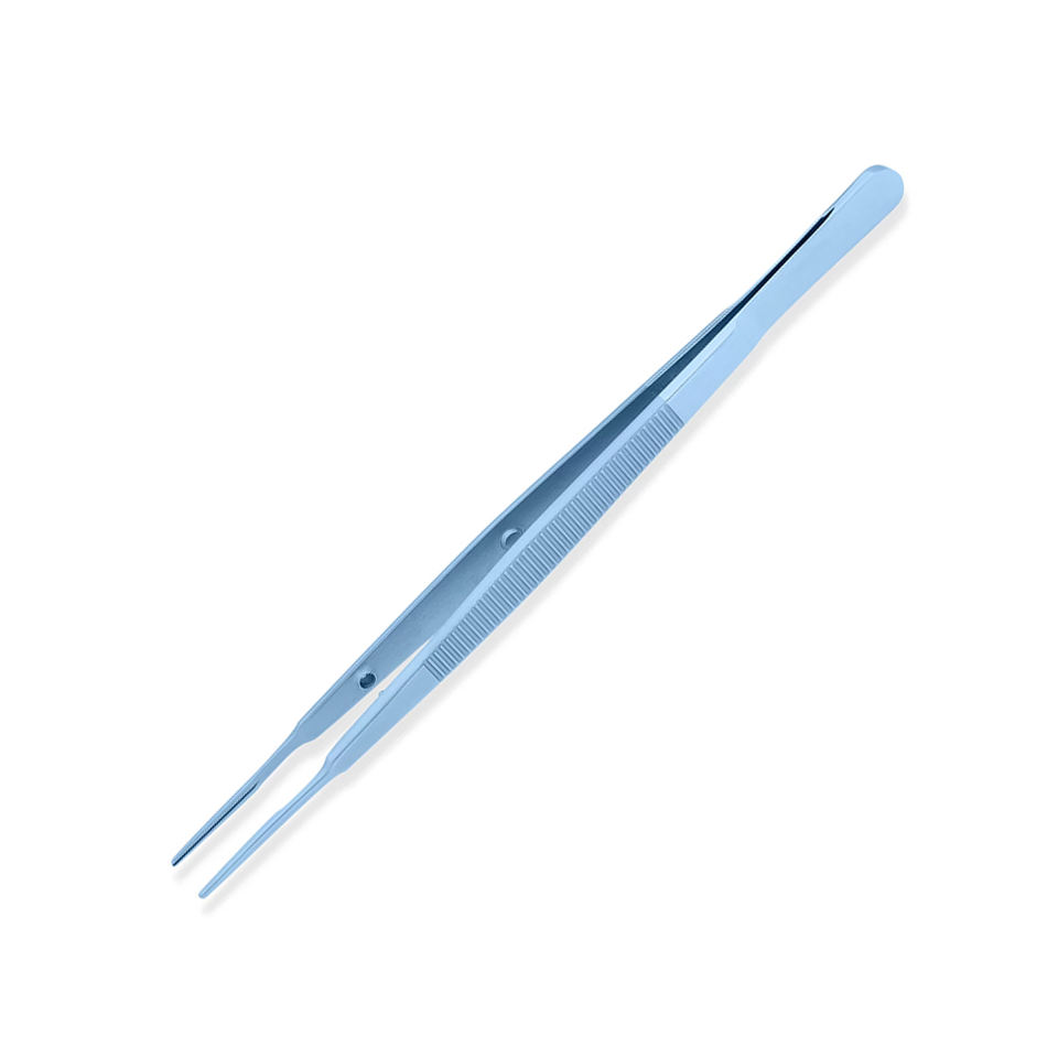 Debakey Micro fórceps azul recubierto de titanio 175 mm 6,78 pulgadas recto delicado dentado Micro fórceps de vendaje