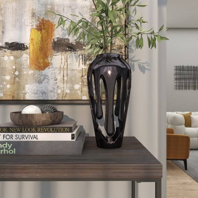 Florero de Metal de aluminio Deco hecho a mano Diseño derretido Centro de mesa de goteo Cuerpo diseñado Florero negro Florero moderno