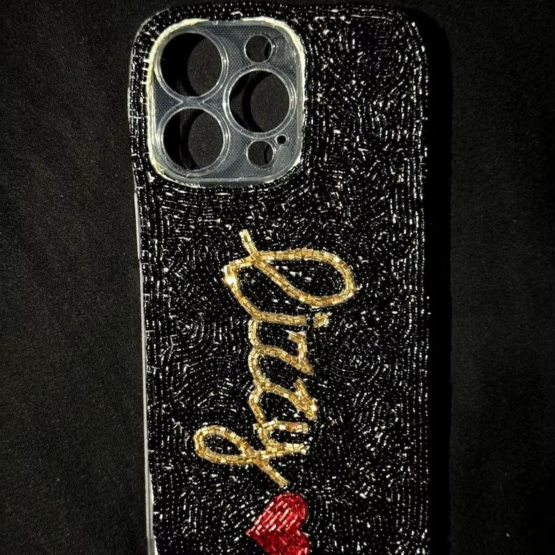 Decor Impex Llaveros de bordado con cuentas simples, accesorios para bolsos con cuentas de semillas, hechos a mano, ecológicos, duraderos, ligeros, con alfabeto