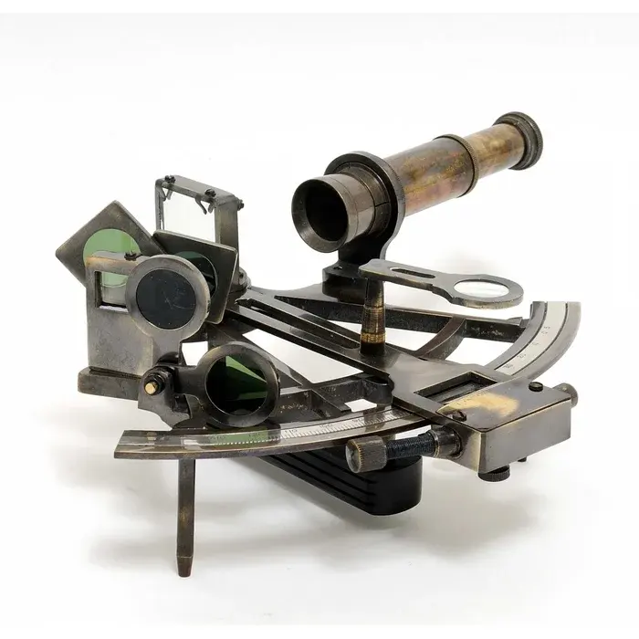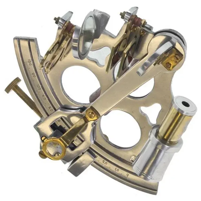 Sextante Náutico Vintage de Latón Brillante con Caja de Madera, Instrumento Antiguo de Estilo Marítimo