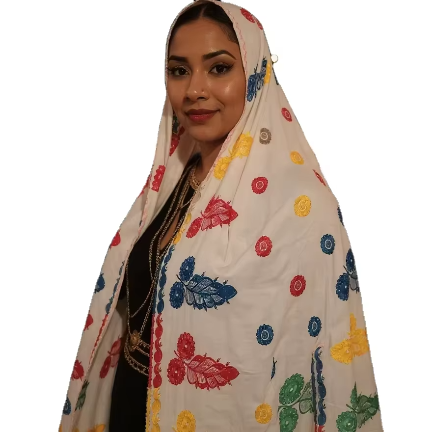 Decoraciones - Chal de chifón africano duradero, transpirable, suave y ligero para mujer, para todas las estaciones, estilo étnico musulmán, con bordado floral y pedrería.