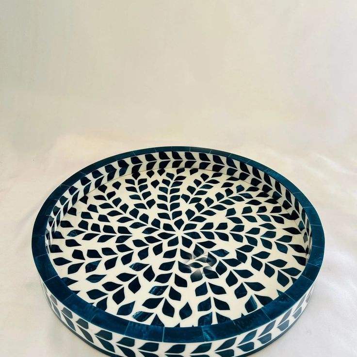 Bandeja Decorativa Ecológica con Incrustaciones de Hueso y Detalles de Ágata Natural, Diseño Floral/Geométrico/Vintage para Acción de Gracias