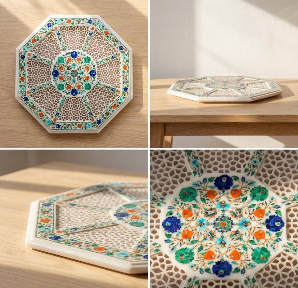 Bandeja Decorativa con Incrustaciones de Hueso, Bandeja de Lujo Hecha a Mano con Textura para Decorar Mesas de Centro, Disponible a un Precio Accesible