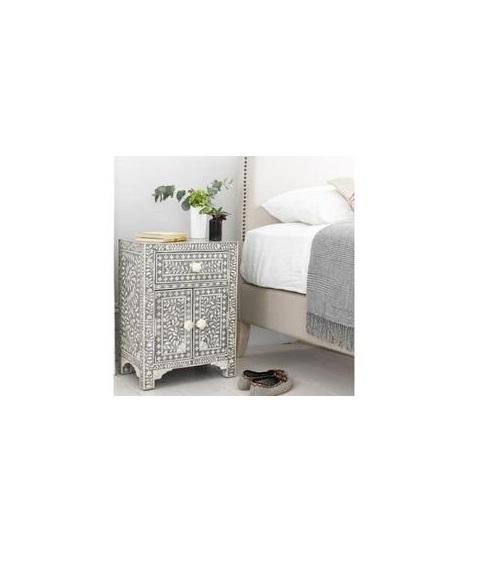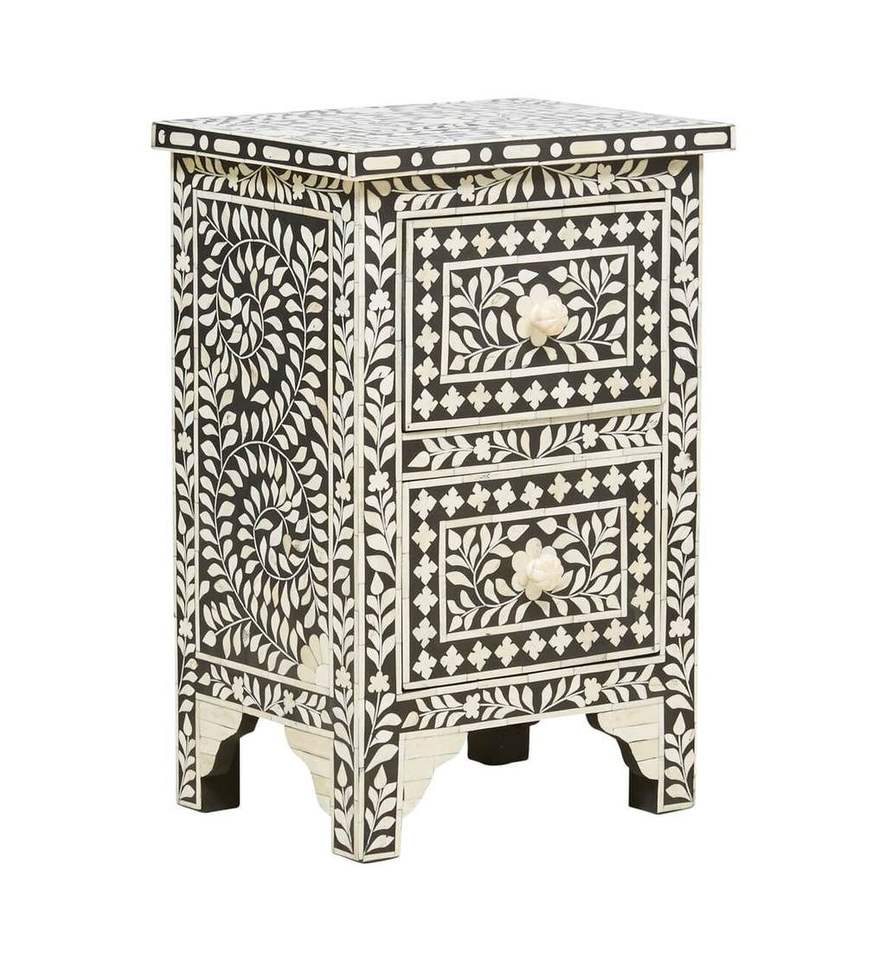 Mesa Auxiliar Decorativa con Incrustaciones de Hueso, Gabinete de Almacenamiento de Madera Hecho a Mano con Diseño Artesanal Tradicional para Dormitorio