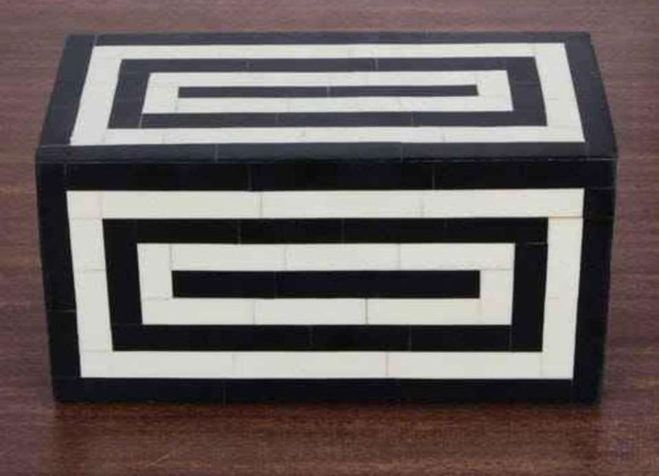 Caja de Regalo Decorativa con Incrustaciones de Hueso y Madera MDF, Pequeña Caja de Almacenamiento de Joyas Hecha a Mano, Caja de Regalo de Boda en Blanco y Negro