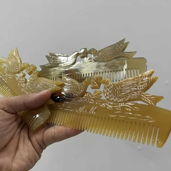 Peine decorativo de cuerno de Búfalo, Vietnam, hecho a mano, pulido, artesanal, artesanía Natural, accesorio rústico, recuerdo, regalo único ecológico