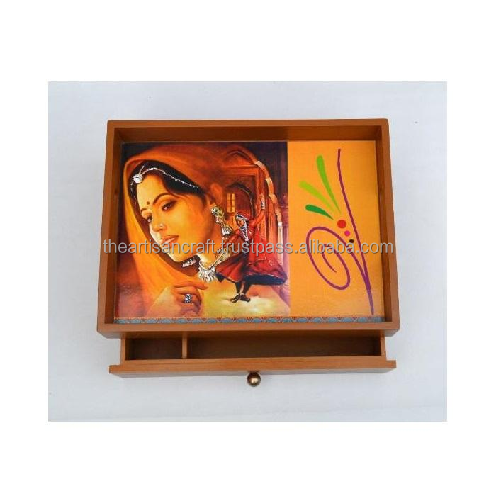 Pegatina decorativa colorida con joyero de madera esmaltado, logotipo personalizado estampado, diseñador impreso de madera