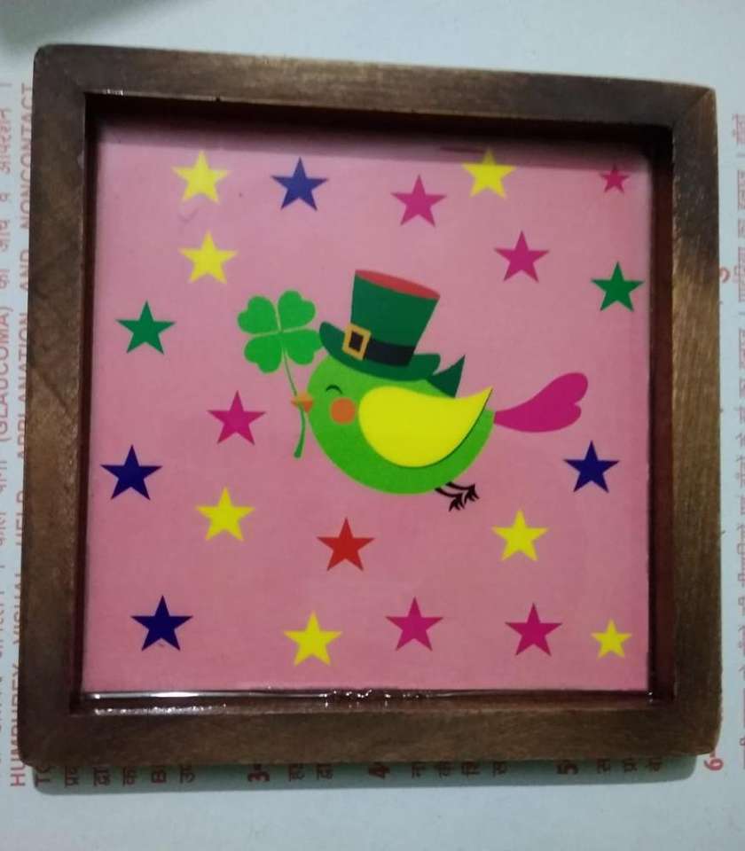 Decorativo colorido etiqueta engomada con esmalte bandeja de madera