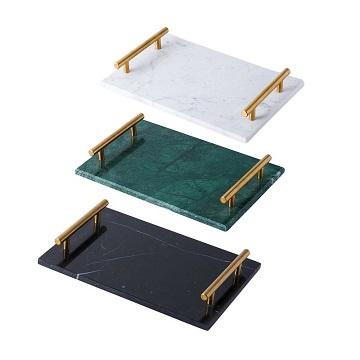 Bandeja decorativa para servir queso de mármol blanco y color personalizado con asas doradas, bandeja para servir de almacenamiento de baño para bandejas de decoración del hogar