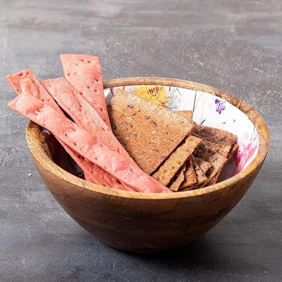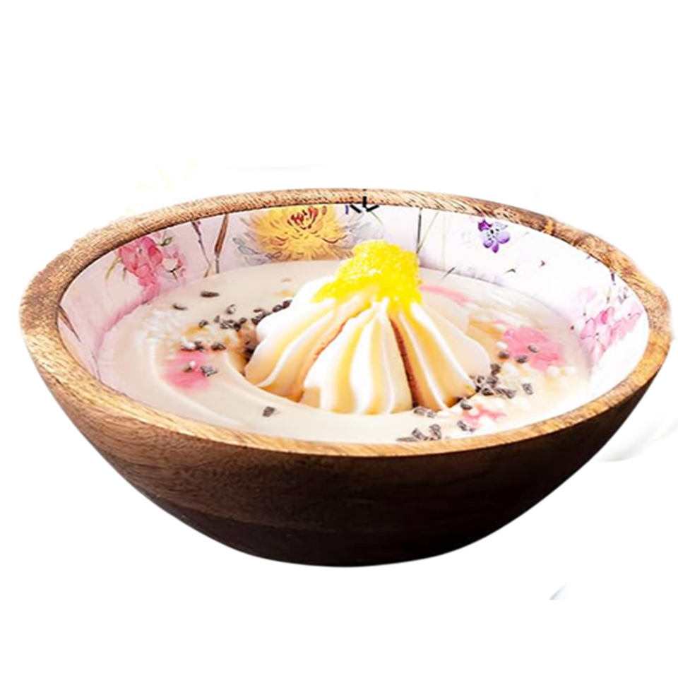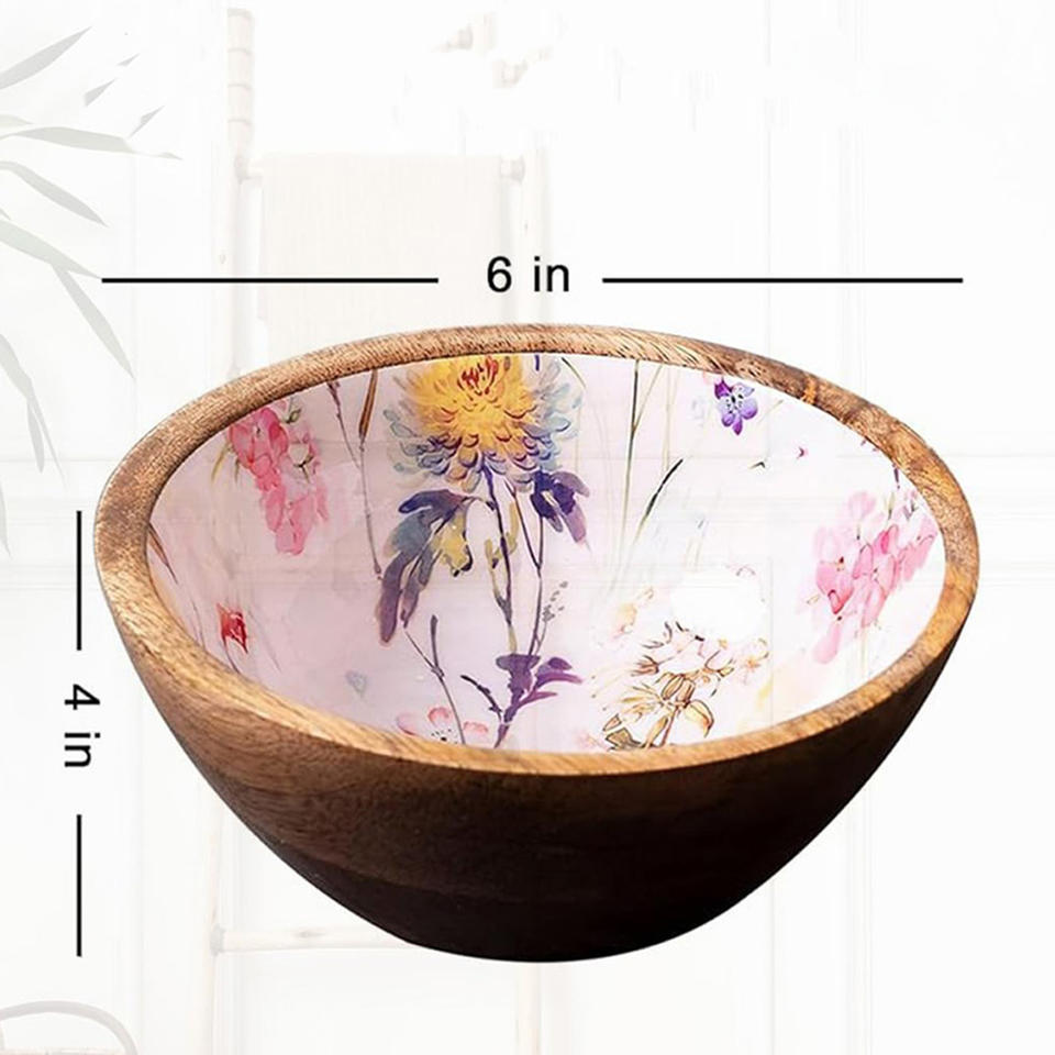 Product Name:Mango Wood Serving Bowl With Enamel Print